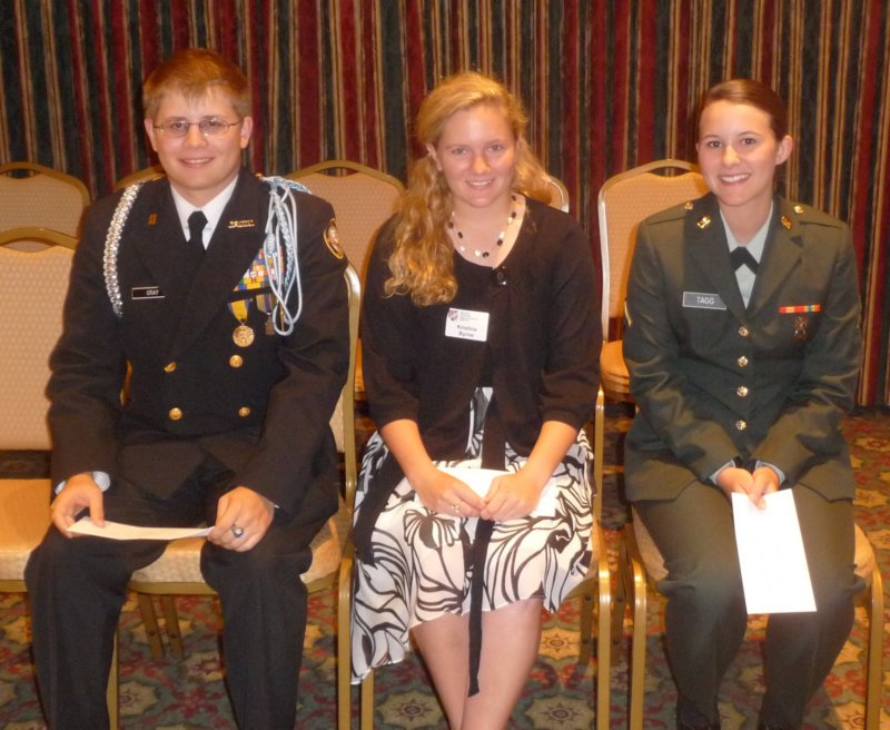 COL William D. Tyra III USMC (Ret) Memorial Award presented by BGen Steven Busby, USMC to David Korin of Bethel High School. Looking on are COL Tyra’s wife Barbara and daughter Ashley.